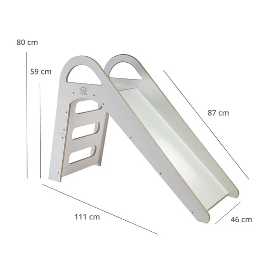 Vidutinio dydžio medinė supynė - laipynė su pagalve ir čiuožykla - balta