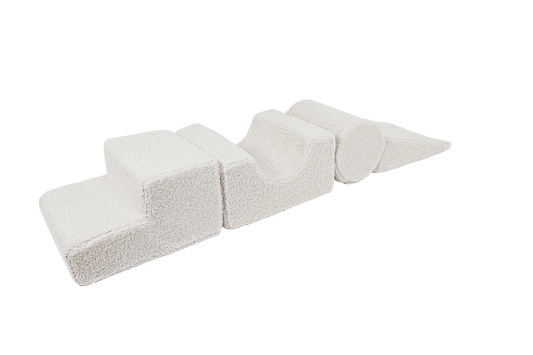 Teddy medžiagos moduliniai baldai su 5 figūromis - spalva Ecru (nebalintos drobės)