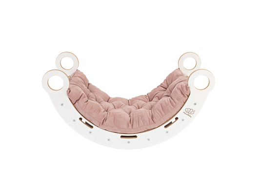 Maža medinė supynė - laipynė su pagalve ir čiuožykla - balta