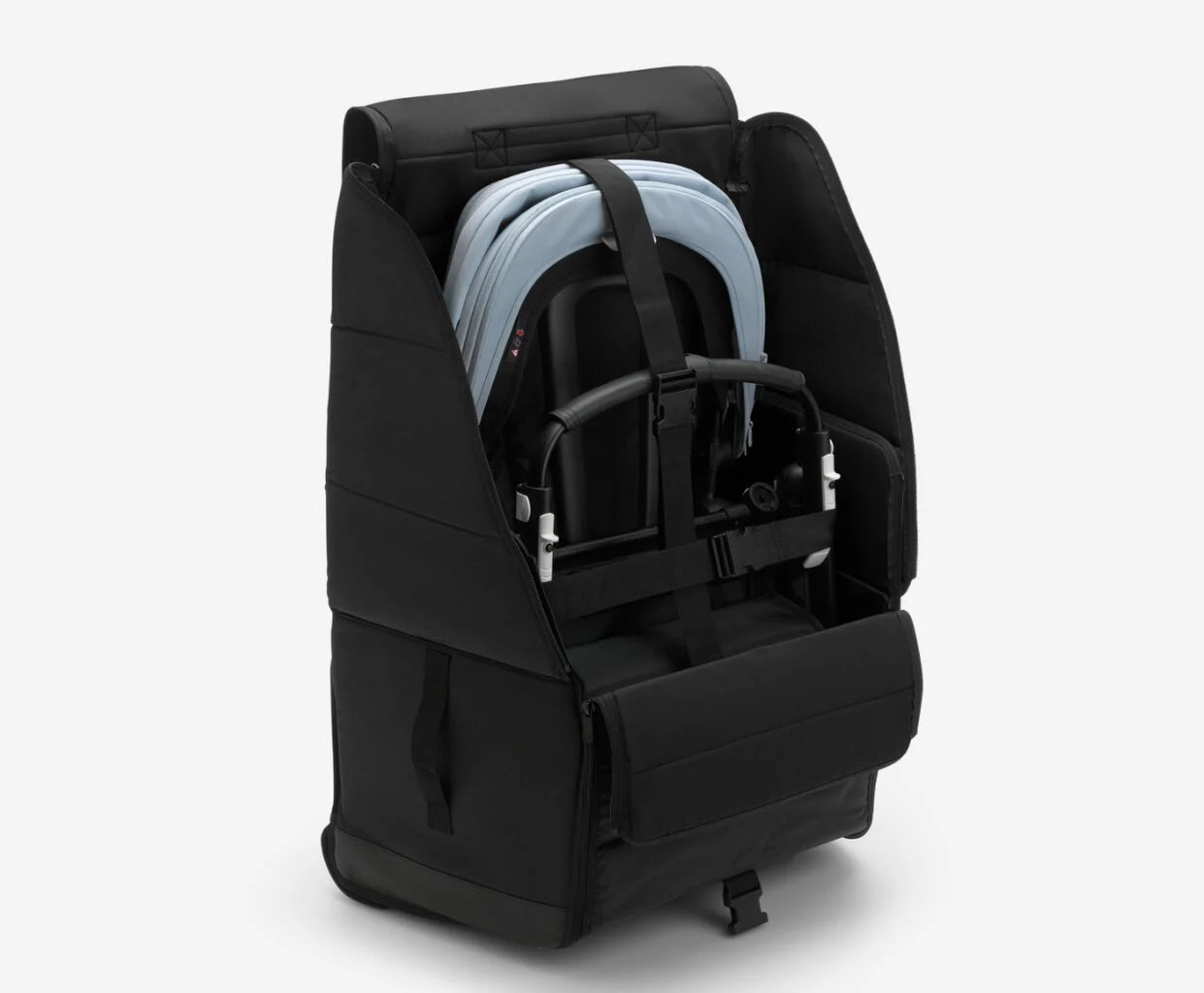 Krepšys su patogiomis nešiojimo rankenomis, pečių dirželiais ir patogiai ratukais, kurie palengvins vežimėlio transportavimą nuo oro uosto bagažo iki taksi automobilio. Yra atskiras krepšys priekiniams ir galiniams vežimėlio ratams sutalpinti, todėl užtikrinsite krepšio švarą. Vežimėlio krepšys su savaiminio stovėjimo funkcija. Krepšys sulankstomas į kompaktišką dydį, kad būtų patogu sandėliuoti, kai nenaudojamas.
